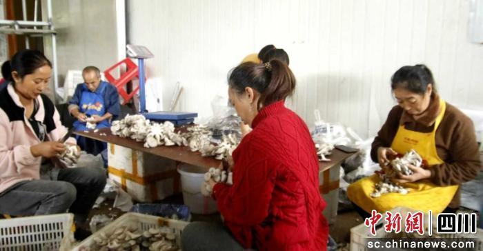 “我平时就在大棚里对平菇进行采摘、装袋,一个小时12块钱,活路很轻松,离家近又可以把屋头照顾到,收入也可以。”花祠堂村村民李秀荣说。