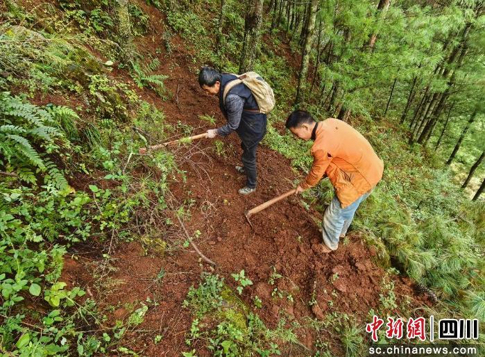 中新网四川新闻11月18日电 冬日清晨六点,海拔2600米的会东县堵格镇团圆村山林还笼罩在雾气中,“松露猎人”管先科和曹世宝背着书包、手持小锄,走向那片熟悉的松林。但今天的采挖,已不同于往日。