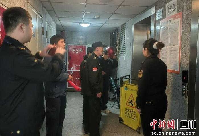 中新网四川新闻11月25日电 “电梯好像出故障了,我们被困在里面了!”别慌,这只是一场演练。近日,在成都高新区肖家河街道某小区,一场模拟电梯困人事故的应急救援演练正在紧张进行。两名“被困人员”按下紧急呼叫按钮后,一场与时间赛跑的救援行动立即启动。