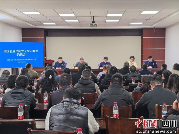 中新网四川新闻11月27日电 近日,成都市青白江区消安指办组织召开园区企业消防安全警示约谈会,经开区管委会、区应急局、区消防救援大队及40余家工业企业参会。