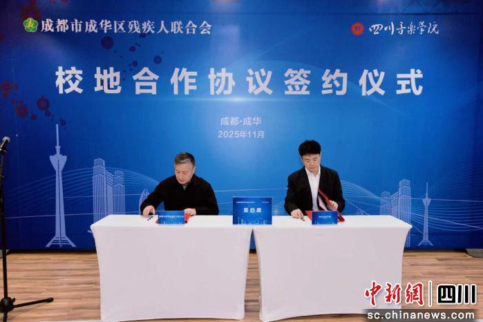 中新网四川新闻11月28日电 成华区残联与四川音乐学院校地合作签约仪式近日成华区残疾人服务中心举行。双方围绕音乐治疗在残疾人康复服务中的实践应用开展深度合作,共同探索“音乐治疗+残疾人康复”创新模式。成华区残联党组书记、理事长唐海,四川音乐学院音乐学系党委副书记兼纪委书记苟用出席签约仪式。