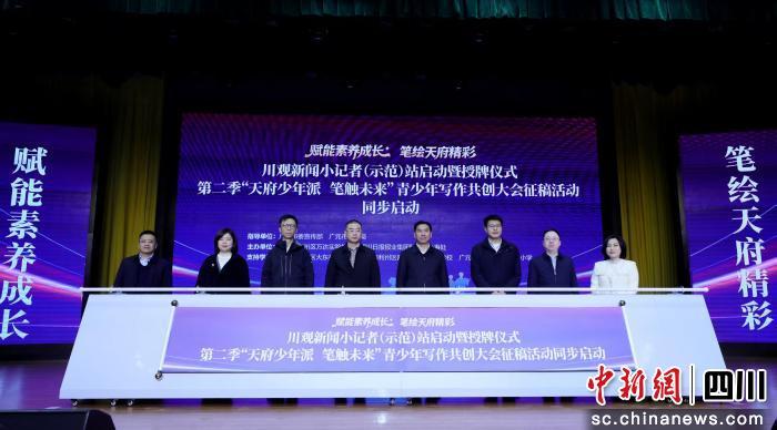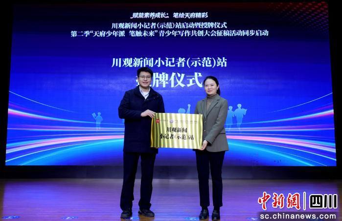 中新网四川新闻12月10日电 (乐虹辰 苗志勇)10日上午,川观新闻小记者(示范)站启动暨授牌仪式在广元市利州区万达实验学校举行,该校成为“川观新闻小记者(示范)站”首个授牌学校。当天,第二季“天府少年派·笔触未来”青少年写作共创大会征稿活动同步启动。