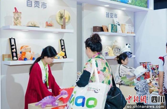 在4号馆境内展区的“中华全景图”板块,自贡展位巧妙融合“沉浸式”布景与数字光影,将“千年盐都、恐龙之乡、中国灯城、美食之府”的精华浓缩于一隅。在现场,琳琅满目的文创产品成为焦点,涵盖灯具、公仔、文具、冰箱贴、配件等多个品类。这些文创好物将传统元素融入现代生活场景,以“可看、可玩、可带走”的体验形式,让观众在近距离接触中加深对自贡城市文化的认知与喜爱。