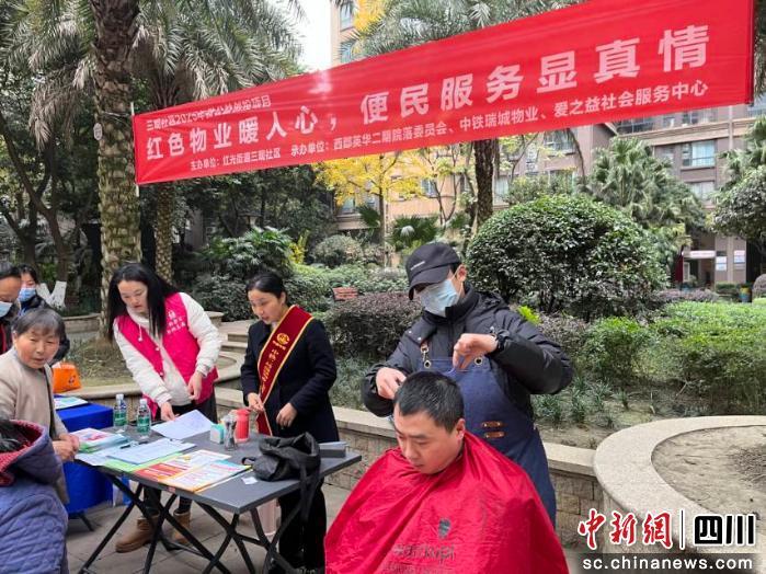 中新网四川新闻12月24日电 近日,成都市郫都区西郡英华二期小区里热闹非凡,一场暖意浓浓的便民服务吸引了众多居民参与。这是中铁二局瑞城物业与社区签署结对共建协议后,与社区常态化开展便民服务的一个生动场景。