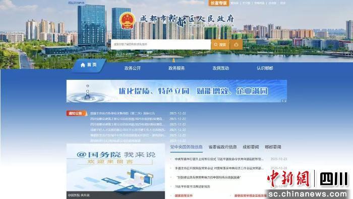 中新网四川新闻12月24日电 近日,工信部中国软件评测中心发布《2025年数字政府服务能力暨第二十四届政府网站创新发展调查研究总报告》。报告显示,在485个区县政府网站排名中,郫都区作为成都市唯一上榜区县,进入全国100强,位列第29名,较去年提升10个位次。