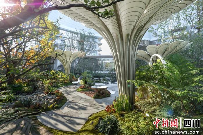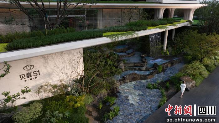 贝宸S1的生态基底,不仅是“造景”,更是“造血”。首先是眼睛看到的5D生态绿洲,整个示范区约200余种植物,通过五重垂直绿化构建了一个城市“立体森林”。在地下车库、下沉庭院、花园+架空层、空中花园、第五立面五个层级,均实现绿化覆盖,并在每个层级都有所创新。108个生态舱将科技悄然融入生态肌理。