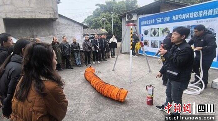中新网四川新闻12月25日电 (刘刚 冯妮娜 黄秋雪)近日,自贡市沿滩区有限空间作业风险防范科普宣传与应急演练活动,在邓关街道太源村村委会的院坝里进行。本次活动是自贡市有限空间风险防范科普宣传系列活动之一,旨在将专业的安全知识送到村民家门口,提升基层群众的安全意识和应急处置能力。