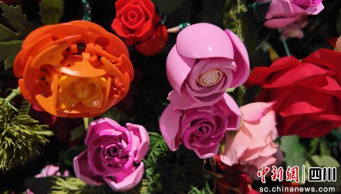 记者在现场看到,约20平方米的约会花房被红粉两色乐高花束环绕,入口处近2米高的巨型乐高红玫瑰成为热门打卡点,不少情侣举着手机定格合影。“这朵玫瑰用了上千块积木,拼搭耗时超过80小时。”现场工作人员介绍,花房内的装饰全部由乐高花植系列产品构成,柔和光影与积木纹理交织,营造出兼具创意与浪漫的氛围。