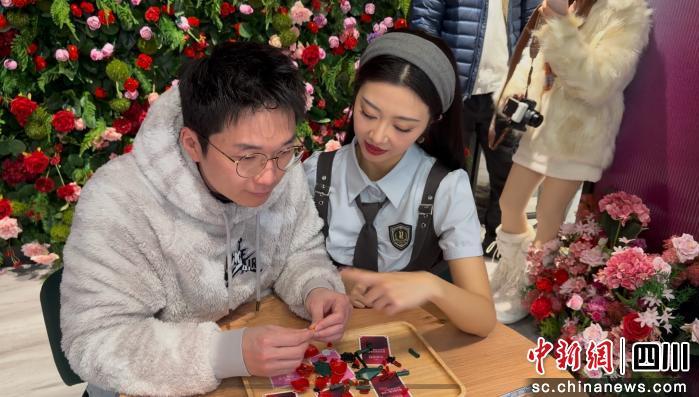 核心体验区里,情侣们正围坐桌前共同拼搭乐高玫瑰花。“按拼搭指南完成组件后,要通过默契配合组装成型。”来自成都的市民李女士展示着手中的作品,她与男友花了40分钟完成拼搭,“拼接积木时手指的触碰,比直接送花多了份参与感。”完成作品后,两人摆出指定手势,桌面即刻投影出“玫瑰花海”动态效果,这一“隐藏彩蛋”引发阵阵惊叹。