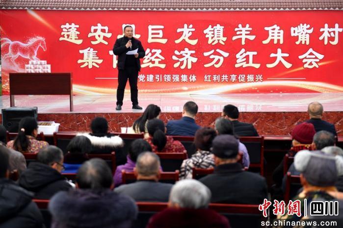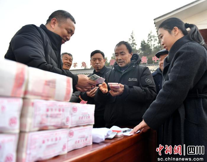 中新网四川新闻2月13日电 (庞圆斌)12日,蓬安县巨龙镇羊角嘴村的党群服务中心院坝里人声鼎沸。村民们排着队,从村干部手中接过沉甸甸的分红款,脸上洋溢着掩饰不住的喜悦。