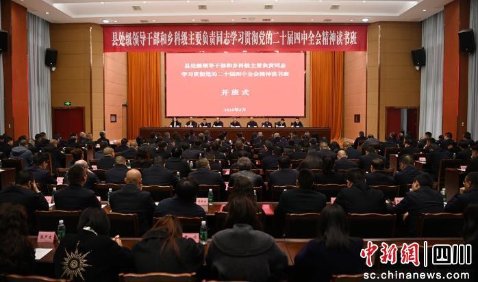 中新网四川新闻3月23日电 (周亮)近日,蓬安县举办县处级领导干部和乡科级主要负责同志学习贯彻党的二十届四中全会精神读书班,蓬安县委书记唐方春作主题报告。4天时间里,219名学员通过聆听报告、专题辅导、分组讨论、个人自学等方式,深学细悟党的二十届四中全会精神,围绕“十五五”发展蓝图谈认识、谈思路、谈举措,奋力将学习成果转化为推动蓬安高质量发展的强大动能。