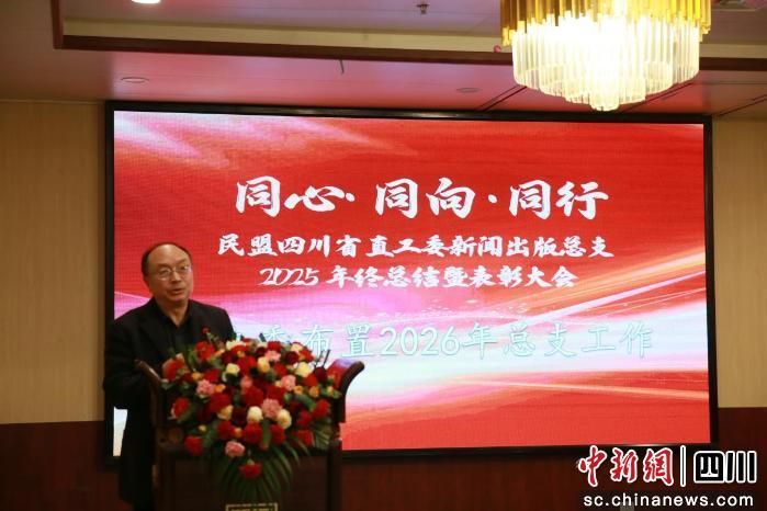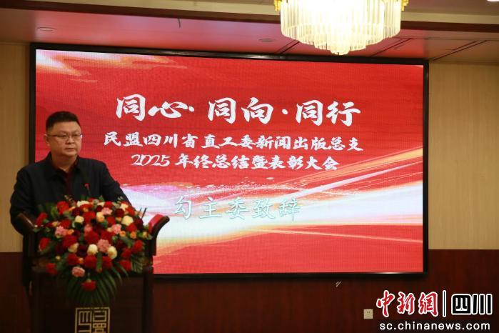 中新网四川新闻1月13日电(王爵 杜成)12日下午,以“同心·同向·同行”为主题的民盟四川省直工委新闻出版总支2025年终总结暨表彰大会在成都举行。民盟四川省委会专职副主委、省直工委主委勾永阶出席会议并讲话,省直工委副主委彭力立、徐世清、邵静波,省直工委秘书长张秀玲,民盟四川省委会机关相关处室负责人及新闻出版总支70余名盟员共聚一堂,现场在目标墙上写下对2026年的美好心愿与祝福。