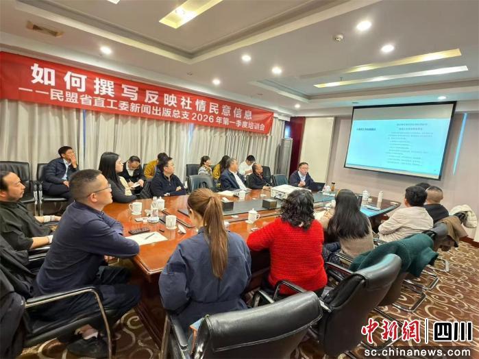 中新网四川新闻3月28日电 为进一步提升盟员参政议政能力,夯实反映社情民意信息工作基础,近日,民盟四川省直工委新闻出版总支2026年第一季度培训会在成都举行,特邀民盟四川省委会参政议政处处长柏相作“如何撰写反映社情民意信息”专题辅导。总支盟员及入盟积极分子共30余人参加培训。
