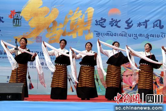 据了解,本次竞演活动,以乡村为大背景、以文化为主旋律、以群众为主角,通过弘扬乡土文化、展示乡村风采、传承非遗技艺、挖掘民俗故事,持续加强乡村精神文明建设,深入推进乡村文化振兴。“吉祥锅庄”的鼓点声声入耳,表演者裙裾飞扬,瞬间点燃了现场千余名观众的热情,也正式拉开了活动序幕。