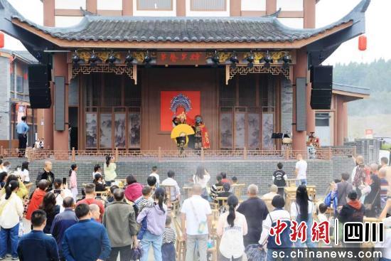中新网四川新闻10月7日电(吴平华 李成)舞蹈表演、舞龙舞狮……近日,资阳市乐至县劳动镇真红巷文旅街区锣鼓喧天、热闹非凡,“趣游乐至‘巷’遇粮仓”陈毅故里片区国庆中秋系列活动启动仪式在这里举行,吸引了不少群众前来观看和游玩。