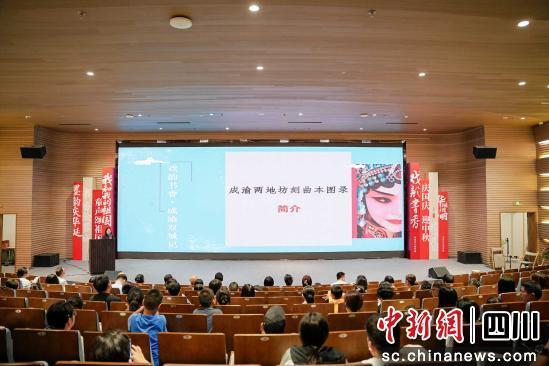 中新网四川新闻10月8日电(唐倩)为深入贯彻落实国家文化强国战略,推动成渝地区双城经济圈文化领域深度合作,10月8日,由成都图书馆、重庆图书馆联合主办,成都市川剧研究院协办的“戏韵书香·成渝双城记——成渝两地坊刻曲本图录联合发布活动”在成都天府人文艺术图书馆报告厅举行。活动通过古籍文献发布、非遗展演、专家讲座等形式,让千年典籍“活起来”,为市民献上一场文化盛宴。