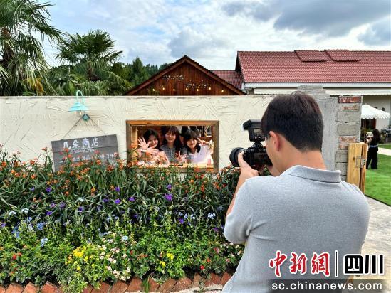 游客唐欣宇正和朋友们翻看相机里的照片,屏幕上显示着白墙竹篱、花团锦簇的景致。“之前刷到朋友发的朋友圈就心动了,今天来果然没失望,每个角落都很适合拍照。”他说道。