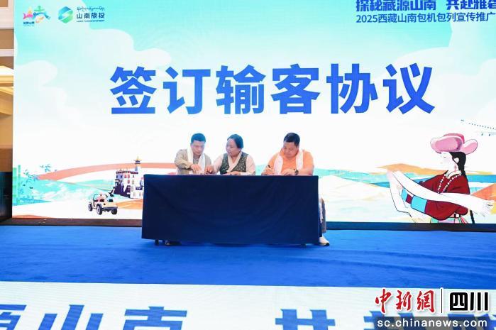 中新网四川新闻10月18日电 悠扬的藏歌在“天府之国”回荡,身着藏装的舞者踏着《打阿嘎》的节奏,将现场观众的思绪带向千里之外的雪域高原。10月17日,2025西藏山南包机包列宣传推广成都专场推介会在四川成都举行,来自成都、上海、长沙等地的文旅企业、旅行社、自媒体代表及行业嘉宾齐聚一堂,共话合作。