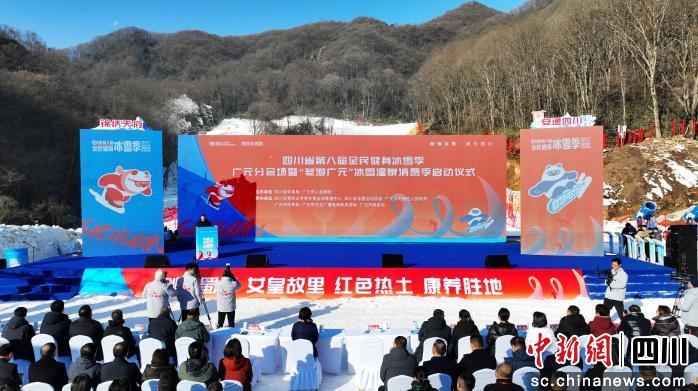 中新网四川新闻1月9日电 (张文良 苗志勇)1月9日,四川省第八届全民健身冰雪季广元分会场启动仪式暨“冬游广元”冰雪温泉消费季活动在利州区月坝滑雪场正式启幕。