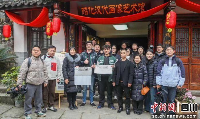 昭化汉代画像艺术馆内,130余种昭化本土汉砖静静陈列在展柜中,砖面镌刻的车马临阙、凤凰朱雀等精美纹饰栩栩如生;讲解员结合实物娓娓道来,系统解析汉砖的历史渊源、制作工艺与文化价值,仿佛带领嘉宾穿越回千年前的昭化古城,让众人惊叹不已。