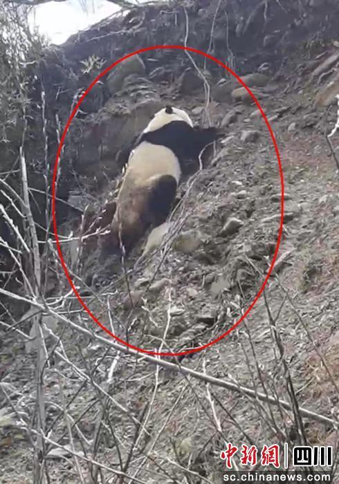 中新网四川新闻4月18日电 (徐珑源)4月17日,四川雅安市宝兴县市民周先生在工作路途中,偶遇一只正在马路边爬坡的野生大熊猫。