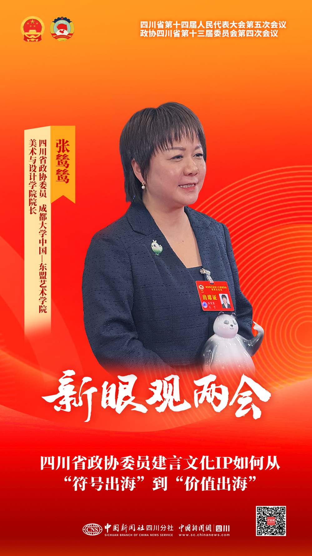 中新网成都2月5日电数字文创的本质是‘以科技讲好故事,以故事连接人心’。融合创新之道在于技术加持与文化活化,四川IP出川出海则需要搭建民心、情感、价值相通的桥梁。5日,四川省政协委员、成都大学中国—东盟艺术学院美术与设计学院院长张鸶鸶带着一只特别的大熊猫玩偶,走上了四川省政协十三届四次会议的委员通道。